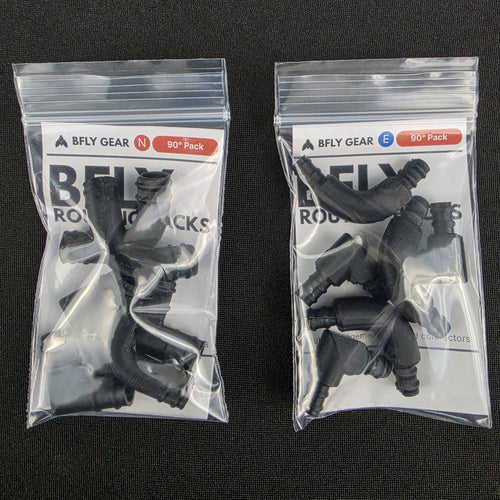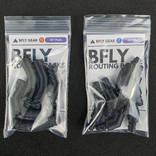 The BFly Routing Kit is a 30-piece tube management system with purpose-built connectors and clips for every headgear surface. No zip ties. No kinks. No lost rail space.